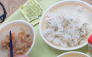 また、2年生の教室に行くとふりかけの裏面を見ていた子に『先生来てください!これは何と読むんですか?』と聞いてくれました。そこには、ふりかけに含まれている食品が漢字で書かれていました。一緒にふりかけに含まれている食品を確認しました。ふりかけの裏の食品表示も興味をもって、しっかり見てくれていて素晴らしいなと感じました。
