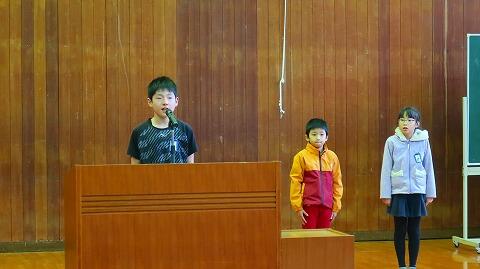 8日(火)3学期の始業式では、代表児童3名が、