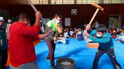 13日(木)全校で餅つきを実施しました。