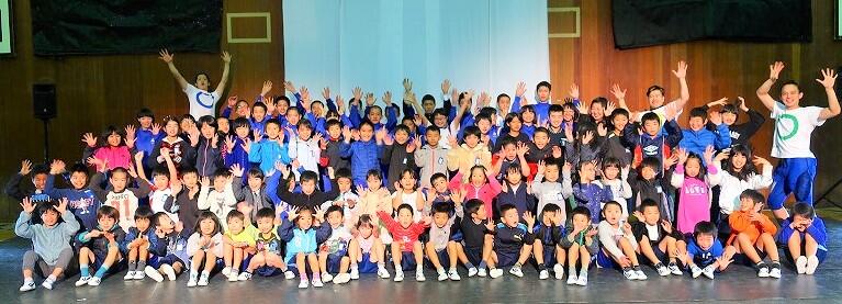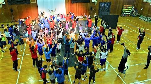 村所小体育館にて、小中合同で、