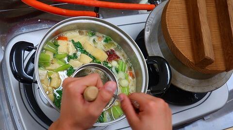 事前学習として、いりこ出汁の取り方や、