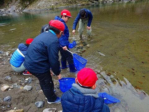8日(土)小川にて3,4年生が語り部の会と一緒に、