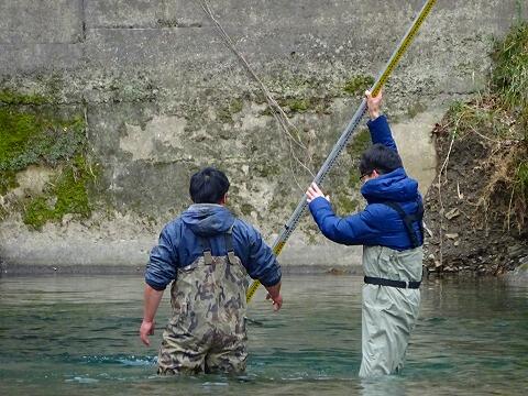 御指導いただきながら一ツ瀬川を調査しました。