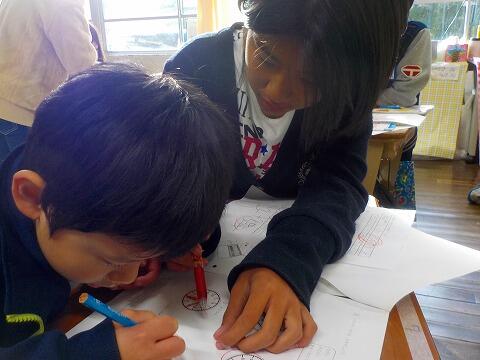 1年生にとっては、身近なお兄さんお姉さんから教えてもらい、