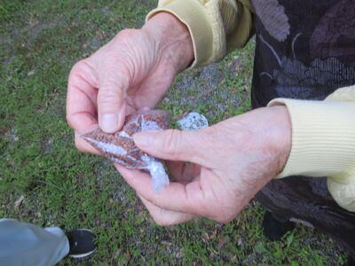 末吉さんからは、植え方や今後のお世話の仕方を教えてもらいました。30cm間隔で4粒ほどずつ埋めると教えてもらいました。