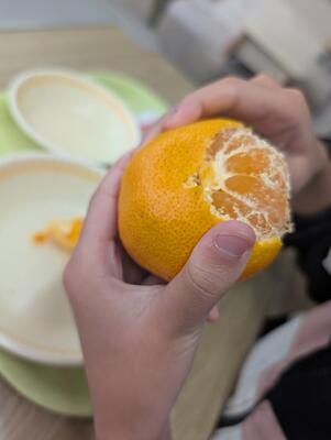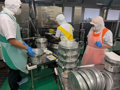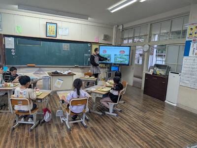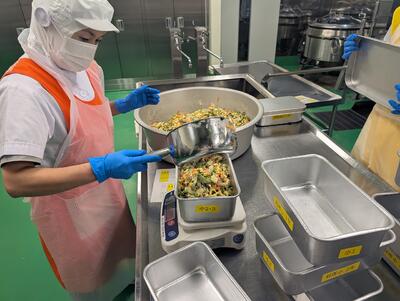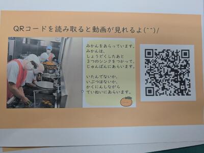 香ばしいやきうどんやさっぱりした梅菜めしが人気でした。果物は3層シンクで丁寧に洗う様子を動画で撮影しました。資料を配布し、各学級で視聴してもらうと、子どもたちは興味津々!衛生の大切さを学びながら、わくわく楽しく食の学習ができました。
