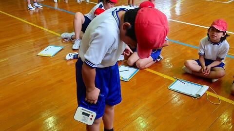 握力、腹筋、反復横跳び、遠投などに取り組みました。