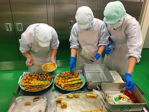 この日は、1~4年生の通常給食を作りながら、同時進行で5,6年生のバラエティ給食を作ることもあり、十分な作業工程の計画・準備を行い、朝早くから作業に取りかかりました。