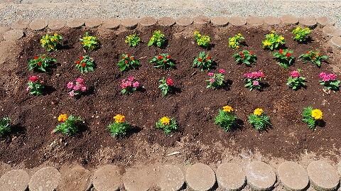 先日、児童たちが整備した花壇のマリーゴールドやサルビアも、