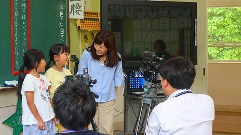畩友さんの御指導や、子どもたちの発表の様子を熱心に取材される中、