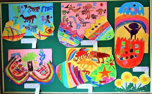 2年生は卵が割れて、中から様々なものが飛び出している様子を描いたもの。