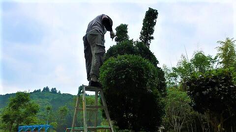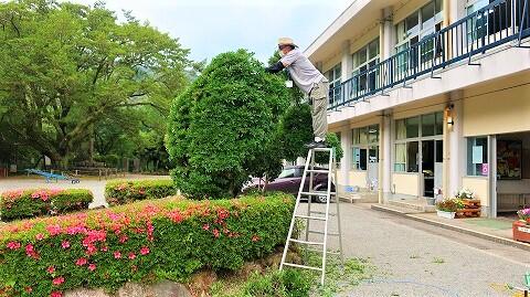 玄関前では室井さんが剪定作業中。