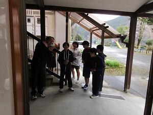 また、学校探検で1年生と2年生が給食室にも来てくれました。2年生から1年生に給食は何人で作っているでしょう?とクイズが出されていました。答えは、全部で6人の調理員さんがいますと2年生がクイズ形式で1年生に教えていました。小中学校合わせて、約115食を1日4人の調理員で作っています。交代で勤務に出ているので全部で6人の調理員さんがいます。