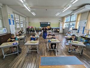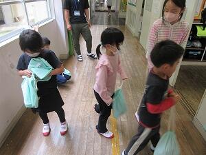 また、1年生の給食当番は、いつもとても素晴らしいです。準備ができた子どもたちは、1列にきれいに並んですぐに出発できるようにしています。
