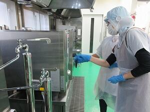 サラダなどの冷たい料理も学校給食では、食中毒予防のため1回加熱してから機械を使って10℃以下に冷却します。学校給食のサラダは、1回加熱しているのにシャキシャキとしていてとてもおいしいです。
