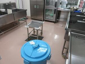 また、給食センターには大きな食器消毒保管庫があります。いつも調理員さんがきれいに整理整頓してくれています。