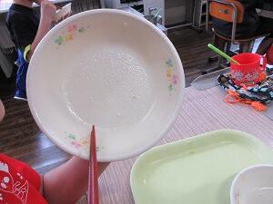 子どもたちは、上手にパンをひとくちサイズにちぎってよくかんで食べていました。