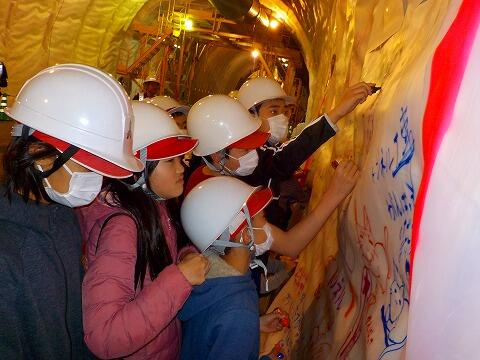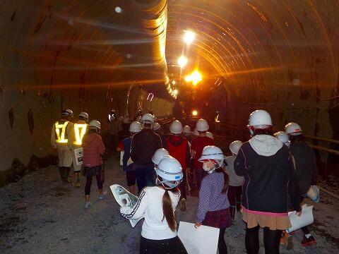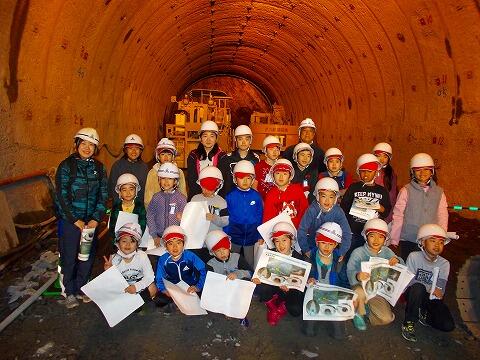 22日(金)3、6年生が小春2号トンネル工事(長さ約480m)を見学。