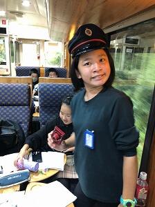 木がふんだんに使われている車内。