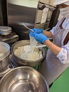 今日の給食室の様子は、ごはんの保存食をとっている様子をお伝えします。