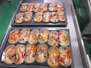 今日の給食は、6年生が家庭科の授業で考案した献立でした。テーマは、『食べてみな〜そしたら楽しくなるから究極の5品』でした。みんなで食べよう麦ご飯、牛乳、箸をとめたら試合終了魚のチーズ焼き、元気100倍りっちゃんサラダ、かぼちゃのチャチャチャ汁♪、焼プリンタルトでした。