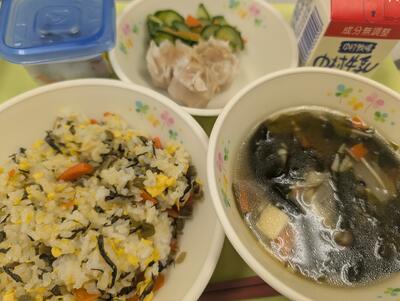 みんなに大人気のシューマイ 投稿日時 : 14:00 nishimera 今日の給食は、高菜ごはん、牛乳、シューマイ、添え野菜、わかめスープでした。 高菜ごはんとシューマイは子どもたちに大人気でした。 高菜ごはんは、調理員さんが具をていねいに作ってくださりました。