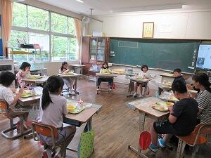 教室に入ってみると、『先生、パンはひとくちサイズにちぎって食べるんですよね?』と聞いてくれた子どもたちがいました。『そうですよ~ひとくちサイズにちぎってよくかんで食べてくださいね。』と話をしながら教室をまわりました。また、パンを使ってポタージュをとてもきれいに食べていた子どもたちもいました。食べる前のようにピカピカな食器が給食室に返ってきたので、調理員さんたちもとても喜んでいました。