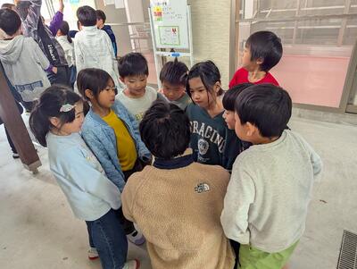 子どもたちは、いつも調理員さんにおいしい気持ちを伝える時に給食室の前で話し合いをしています。