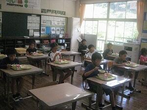 4年生は、食事のマナーをしっかり守って、チリコンカンに入っている豆が苦手な人もがんばって食べていました。