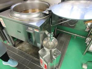 また、揚げものはフライヤーという大きな機械で揚げます。写真は、使用したあげ油を濾しているところです。この後調理員さんは、このフライヤーをきれいに洗います。以前までは、この作業をする時に右下の筒状の部分にフライヤーの中に残った衣などが詰まって調理員さんたちが苦労しながらこの作業をしていました。この機械を取り扱っている業者さんに筒状の部分に衣等が入らないようにするにはどうすればよいのか相談したところ、この機械専用の部品はないとのことでした。しかし、業者さんが色々調べてくれて使える部品を探してくれました。そのおかげで今では衣等が詰まることなくスムーズに作業をすることができています。給食は、機械などを取り扱う業者さんにも支えられています。たくさんの方に支えられていることを改めて感じました。