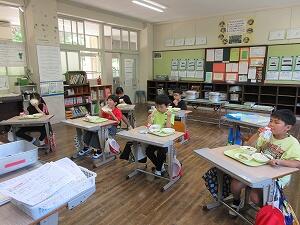 今日は、2年生の給食当番を見ていてとても素晴らしいなと思ったことを紹介します。ひとりひとりが給食当番の仕事に責任をもって取り組んでいました。当番以外の子どもたちもタイマーをかけたり、ストローを配ったり、台ふきをしたり、それぞれの仕事を頑張っていました。給食当番は、ただ食事の準備をするだけでなく責任感や協力して行うことを学ぶ教育活動です。