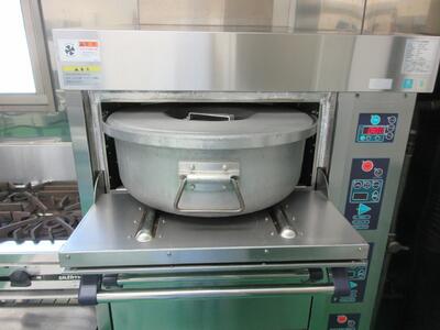 大きな炊飯器で炊いています。小学校中学校の分をあわせて毎日米を10kg炊いています。だいたい、ごはんになると22kgぐらいになります。と伝えると子どもたちはとても驚いていました。