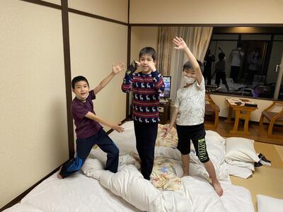 子供たちは、食事後、各部屋でお風呂を済ませ、寝る準備です。みんな体調もよく、無事に1日目が終了しそうです。