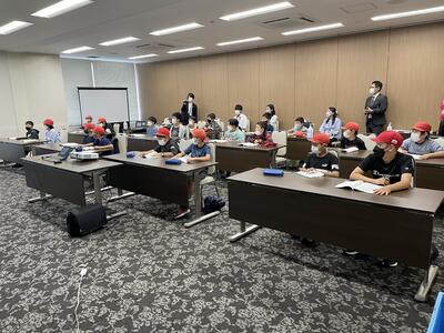 空港では、航空会社の仕事を各担当の方からスライドで説明いただきました。いろいろな役割があることがわかりました。アナウンスと誘導の体験もしました。体や言葉を使った表現力向上に役立ちます。