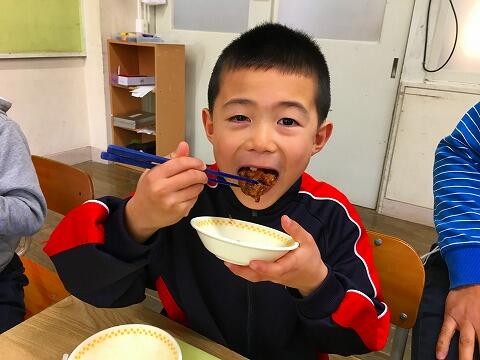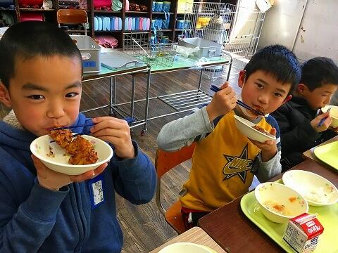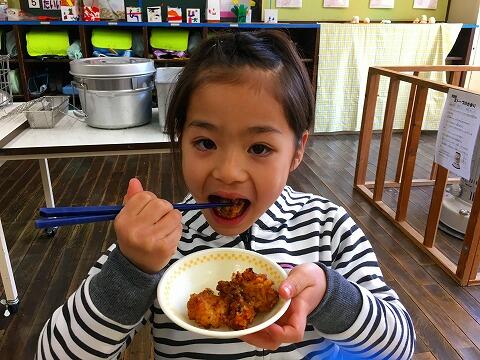 子どもたちもこの日を楽しみにしていてくれ、食べてみて…「おいしい!」と目をキラキラ輝かせてくれました。大変な作業が続くメニューでしたが、調理員さんのおかげで提供することができました。