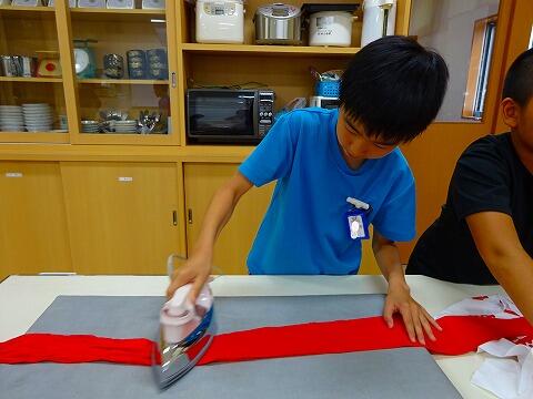 自分の「たすき」だけでなく他学年の「たすき」もアイロンがけを行いました。