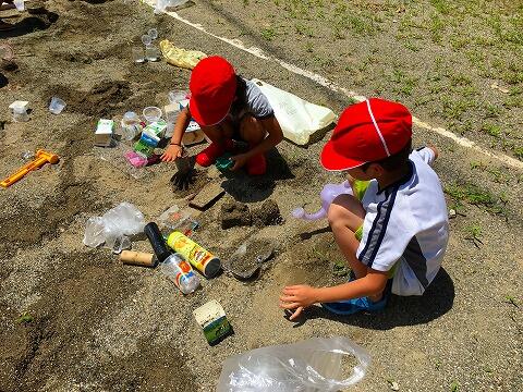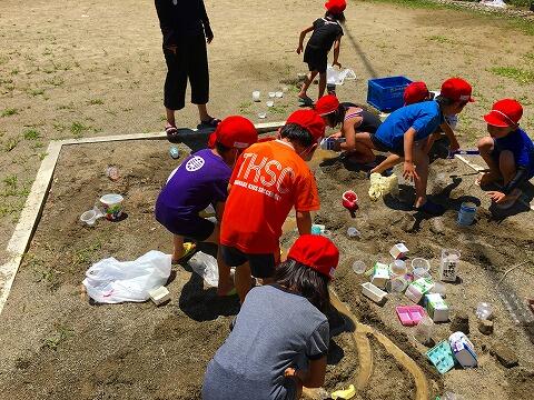 12日(木)久しぶりのお天気空の下、1年生は砂遊びをし実施。