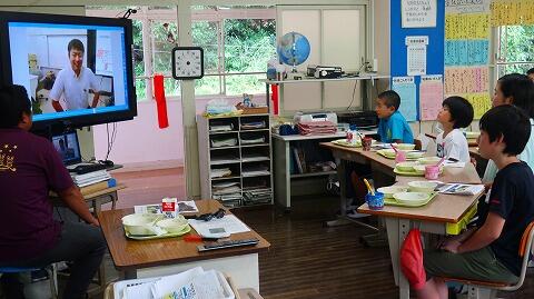 TV会議を通して給食中の児童に一斉に御説明いただきました。
