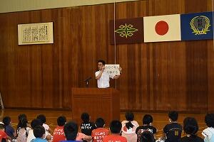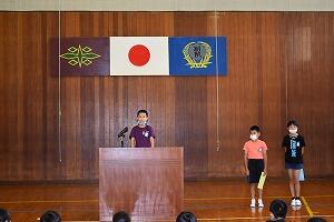 2年生の吉良たけるさん、4年生の稲垣だいきさん、6年生の藤高いとはさんが代表で作文を発表してくれました。2学期にがんばりたいことについて、堂々と発表できました。