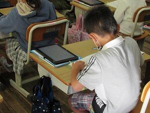 西米良の食について設定した課題を解決するために、これまで調査をしてきた3年生。収集した情報を相手にわかりやすく伝えるために、タブレットのグループ機能を活用して、わかりやすくまとめることができました。