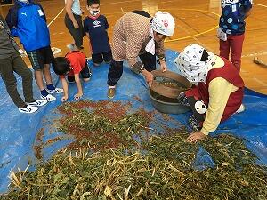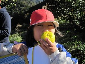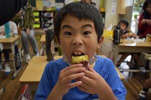 秋の味覚を楽しんでいる村所小学校です。