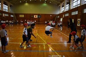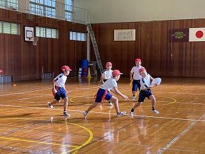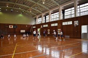 男子10名、女子2名が協力して声をかけあい、ゲームを楽しんでいました。
