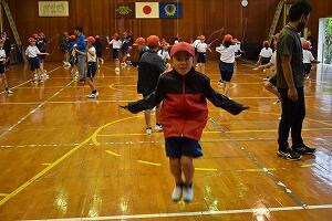 今回は、体育館でなわとびをしました。