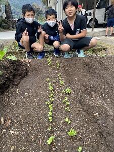 最近の陽気のおかげもあり、先日植えた理科園の野菜も芽を出し始めました。