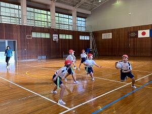 4年生が体育の学習でタグラグビーをしています。