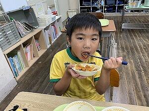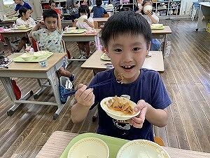 給食センターでは、夏休みに新メニューの開発を行い、新しいジビエ給食メニューが登場しました。