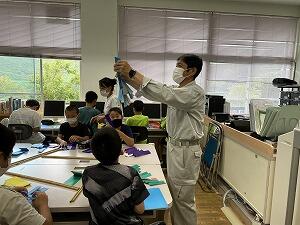西米良の神楽の舞手でもある小河さん、濵砂さん、黒木さんに講師として来ていただき、指導していただきました。