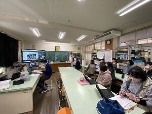 今回は、小学校、中学校、教育委員会の3会場からのオンラインでの研修となりました。