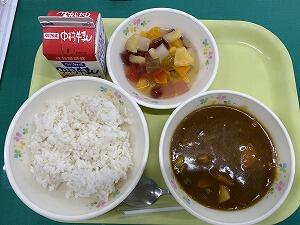 麦ごはん、チキンカレー、フルーツクラッシュ