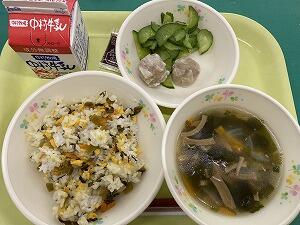 わかめごはん、タイピーエン、大豆と小魚の揚げ煮